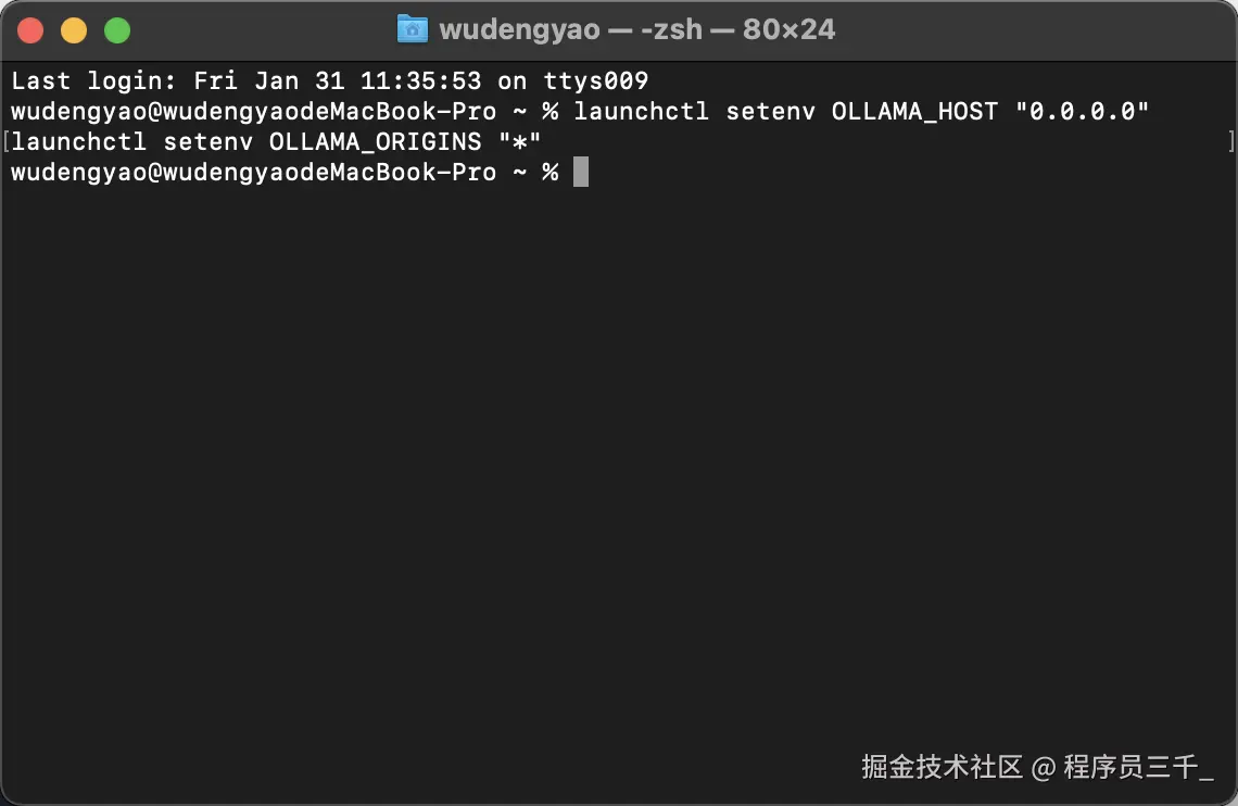 打开终端,输入输出我们刚刚复制的这串代码,点击回车,OK 了。windows 也是一样的啊。然后我们重启ollama。