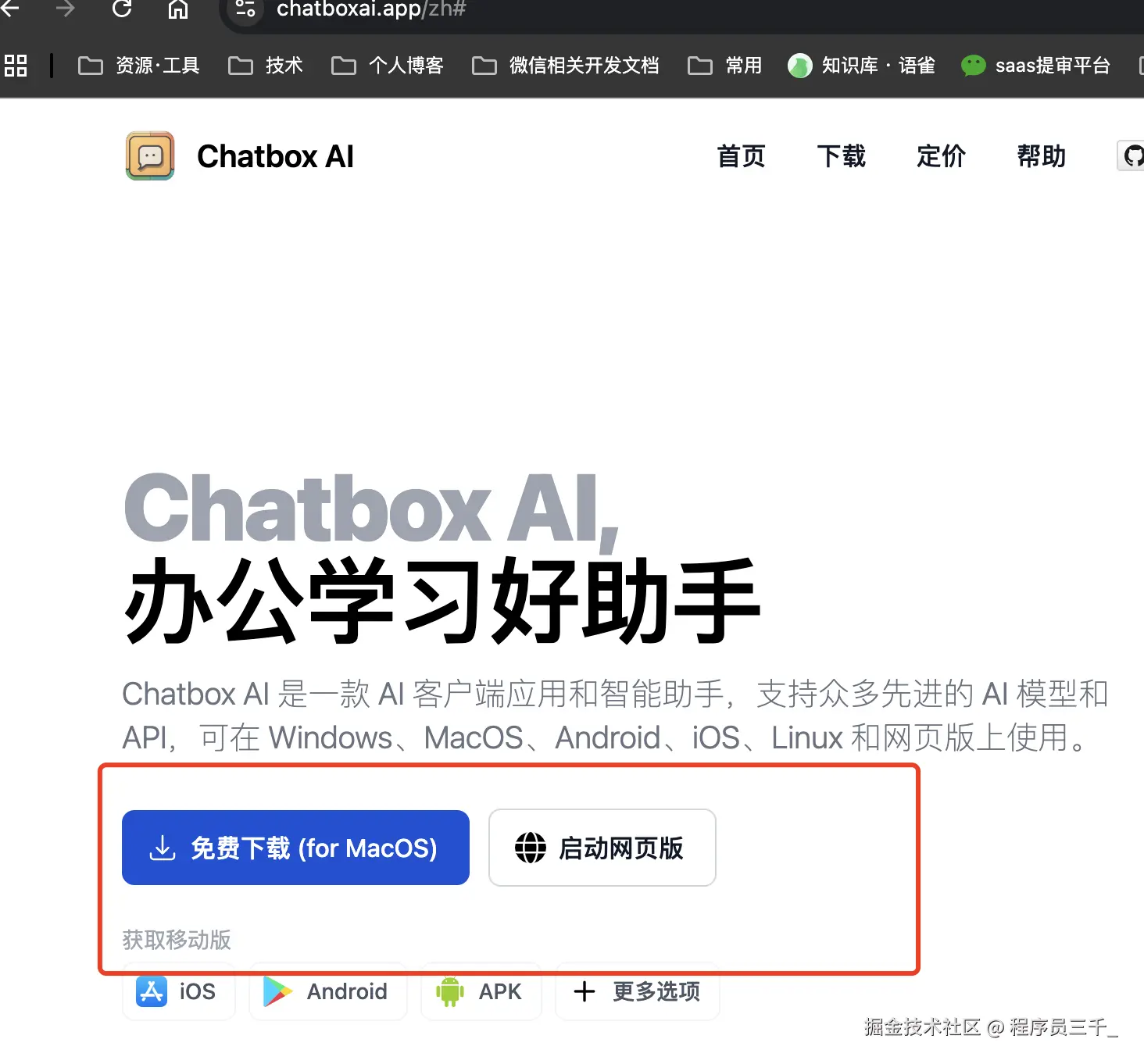 第一种就是使用chatbox,浏览器搜索直接进入chatbox的官网,这里可以使用网页在线版,也可以直接下载到电脑上去安装使用。
