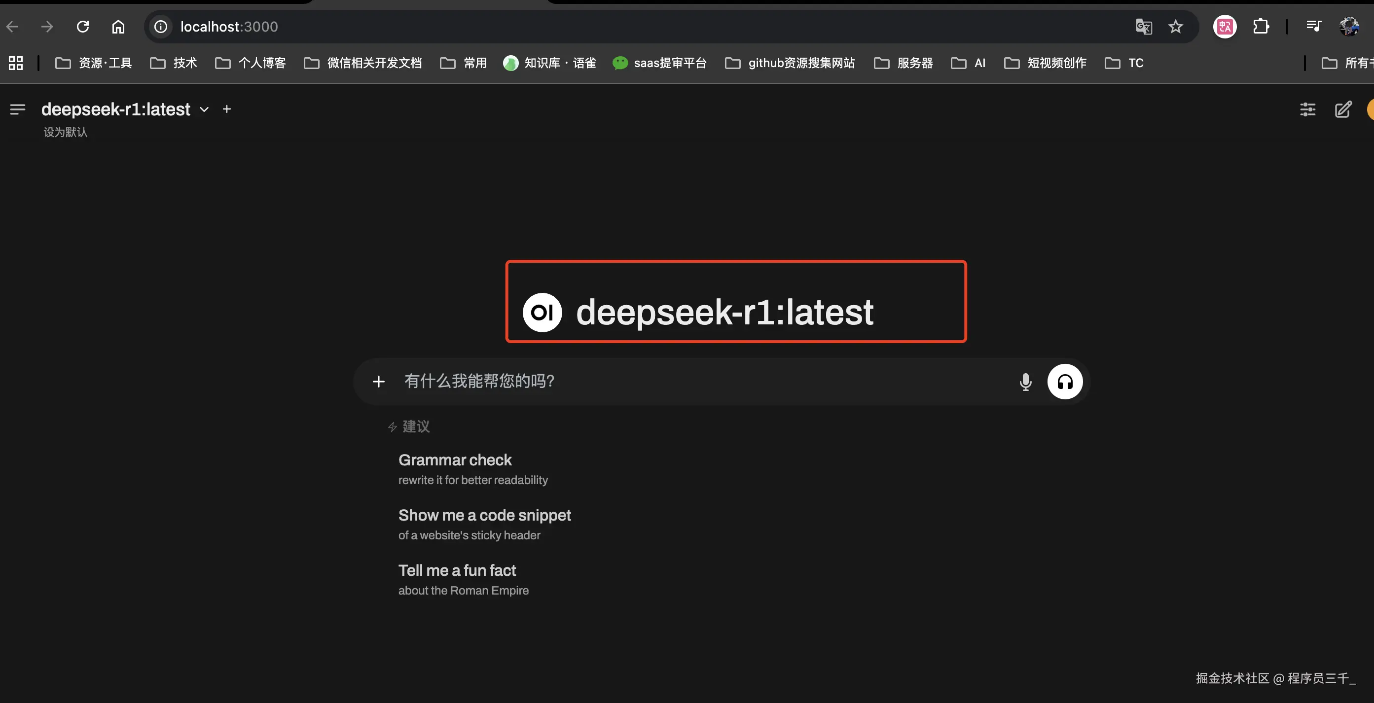 这里它就显示了我们刚刚下载的 deepseek r1 模型。在这里我们就可以直接问问题了,然后这个语音输入也是可以的。