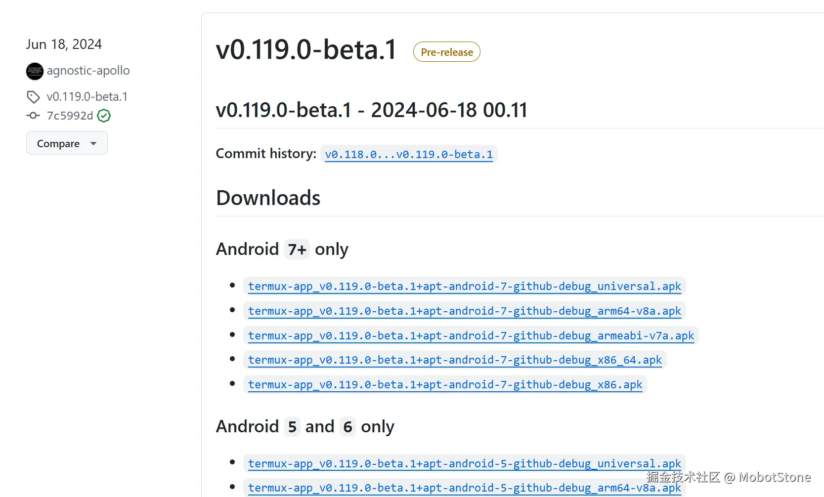 - 打开Termux GitHub Releases页面