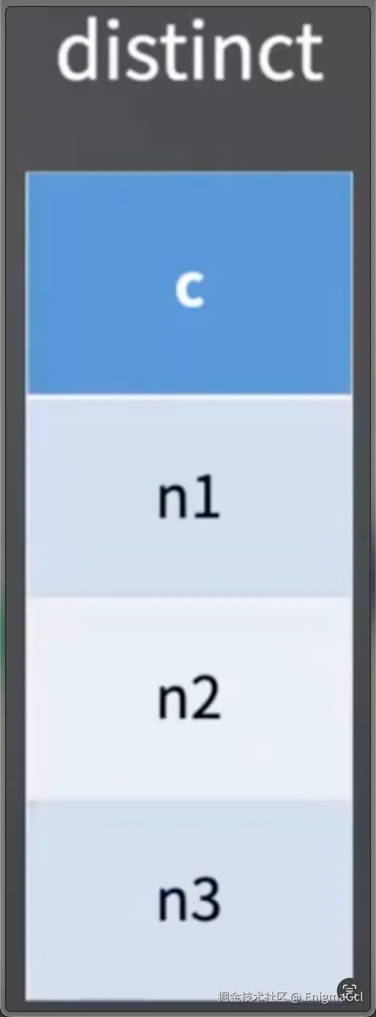 distinct:创建一个只有一列的唯一索引表,从引擎层返回的行都插入该表后返回,跟 group 很像,只是没有计数列而已,这两个操作都需要使用临时表,如果内存空间足够,那么使用内存临时表,如果不够,使用磁盘临时表?