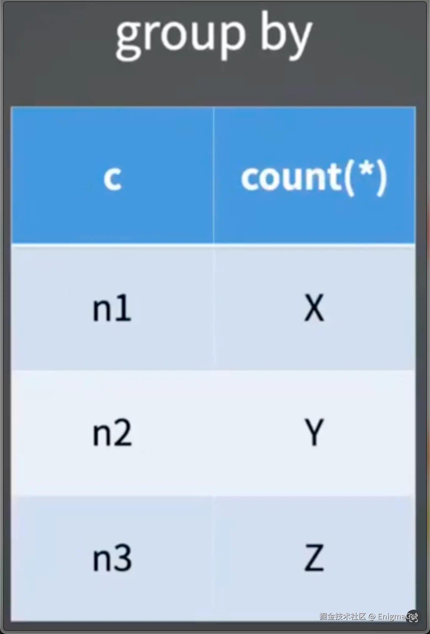 group by:创建一个两列临时表,第一列为唯一索引,第二列为计数,从引擎层返回的行插入该临时表计算最后返回,8.0 之前版本默认会将 group by 的结果排序,因此还有一个排序消耗,如果 group by 的字段本身是有序的,比如主键索引,order by x group by x 等,可以省略排序过程,并且可以不用临时表,因为扫描到不同数据时,返回当前数,记录下一个数即可,可以作为优化方向