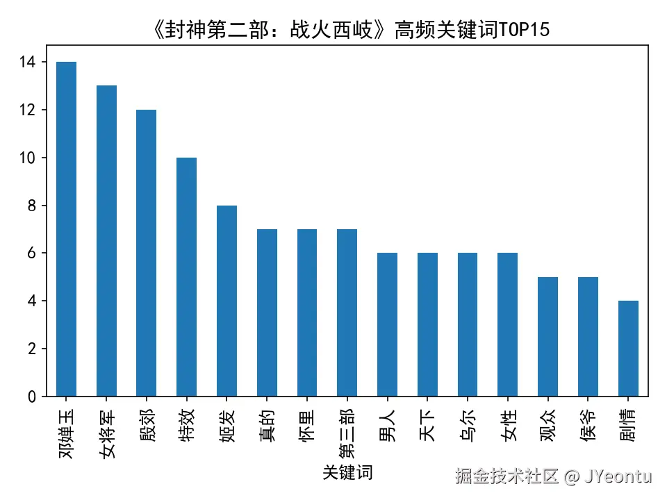 plt.title(f'《{movie_name}》高频关键词TOP15')