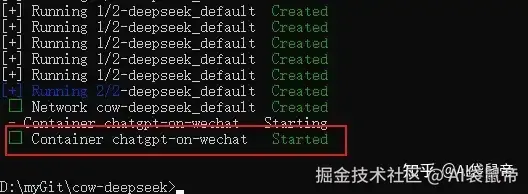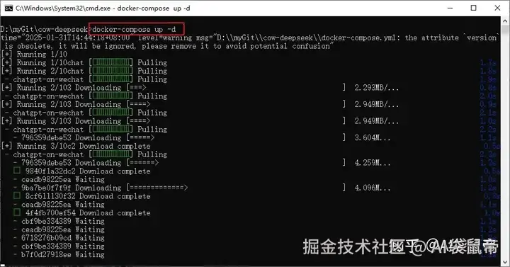 控制台输入指令docker-compose up -d ,然后 回车(就自动下载、部署cow了)