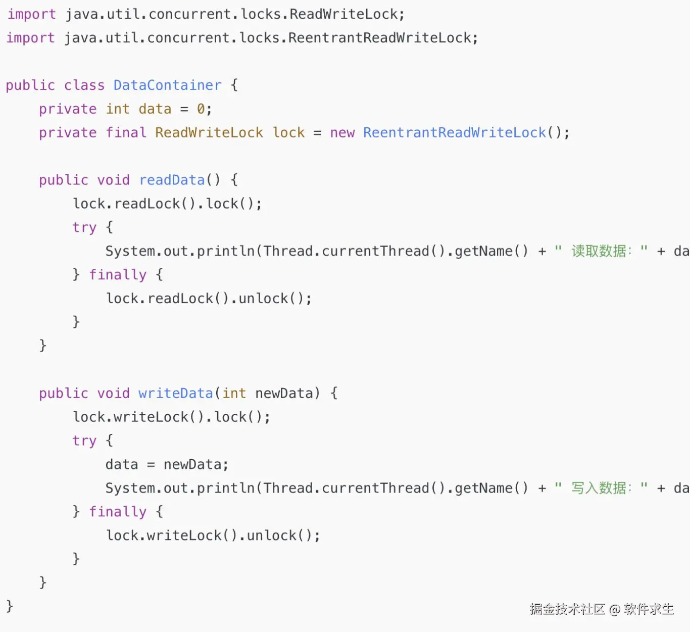 - readLock() 允许多个线程同时读取,提高并发能力。