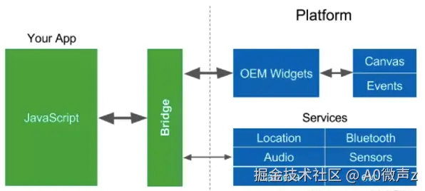 在RN的工作机制中,开发者编写的仍然是JavaScript代码。这些代码首先被用来构建一个Virtual DOM,随后通过Bridge将这个虚拟DOM传递给原生层进行UI的创建和渲染。