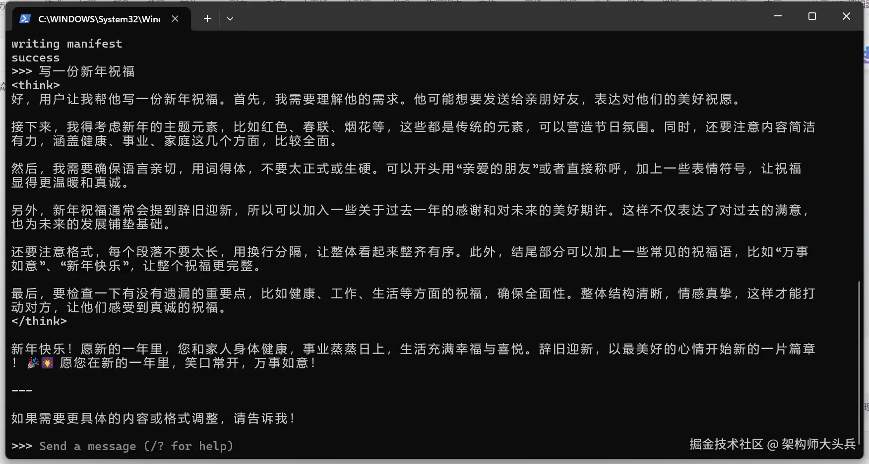 运行如下命令可以进入对话模式: