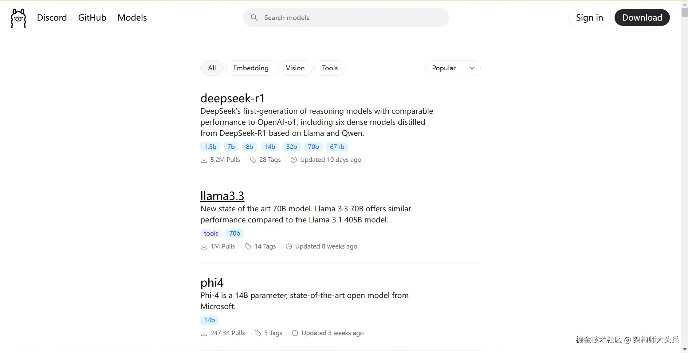 安装完成之后需要部署模型才能运行,我们需要选择一个合适的模型。