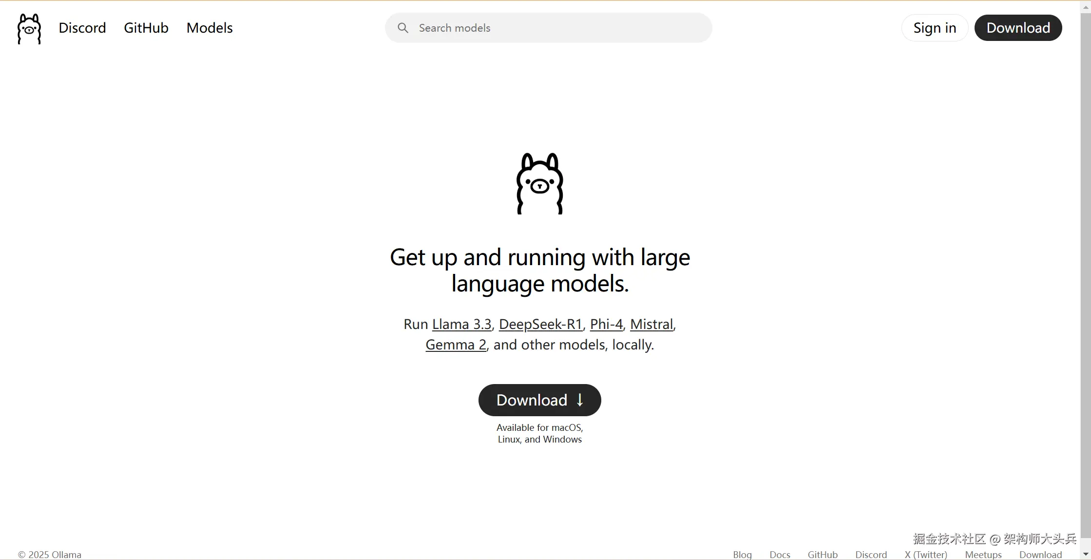 于是很小伙伴都想亲身体验一番,DeepSeek的出现使得大模型“平民化”了,这里我整理了一份个人的实操手册供大家参考,首先我们需要到下载安装包Ollama
