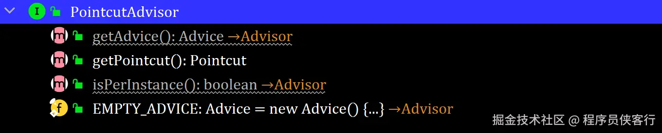 一个Advisor由一个Pointcut和一个Advice组成。子类PointcutAdvisor有如下方法。