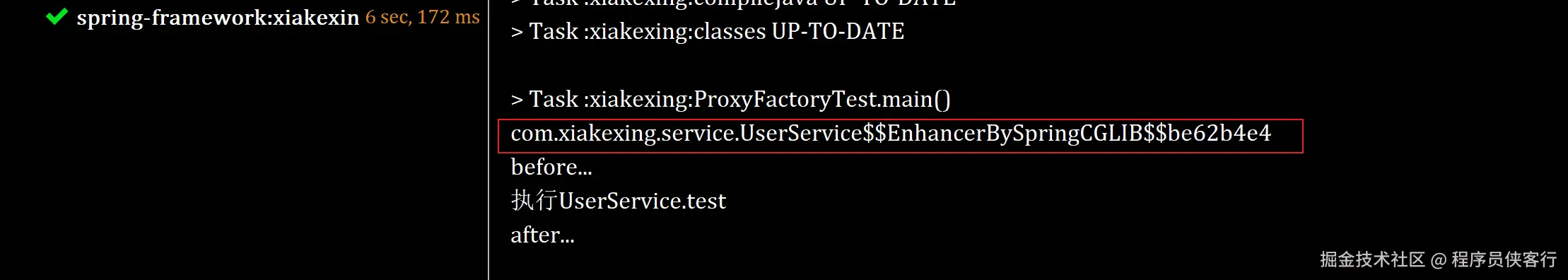 上面示例中,没有给UserService指定接口实现, 因此使用了Cglib代理。