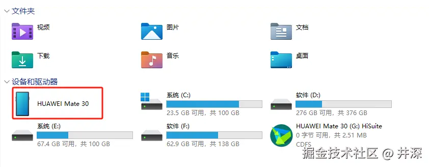 - 用数据线和电脑连接,电脑中出现手机设备才行,如下图;
