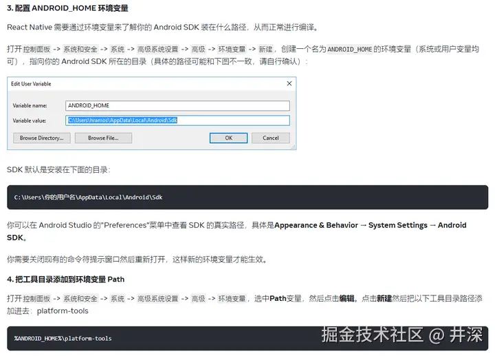 随着互联网的遇冷,前端如果只局限于 web 端开发的话,路会越走越窄,应该多朝夸端开发的方向拓展一下。最近研究了下使用 React Native 开发 App,这里分享下从搭建到构建一个 apk 的完整过程,以供参考学习。由于本人的 Mac 电脑还是 2018 年款的 8G 内存,跑不了 iOS 开发所需的环境,所以以下内容是在 windows 电脑以 Android 开发的角度书写的。