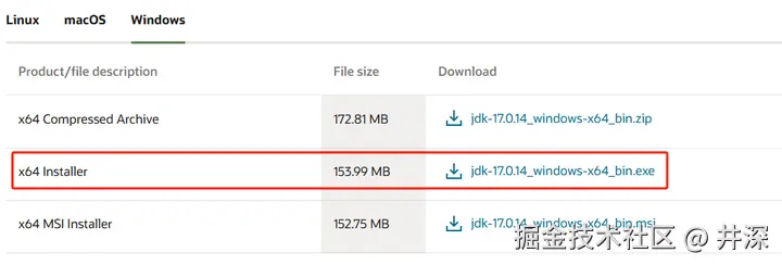 - Java Development Kit [JDK] 17 - 不建议直接使用搜索引擎搜索下载,尝试过......有很多夹带私货的流氓软件;通过科学上网直接到 官网 下载,注意需要先注册登录才能下载,为了长远考虑发点时间注册下也是值得的;还有一点需要注意的是你的 React Native 版本,低于 0.73 版本的 React Native 需要 JDK 11 版本,而低于 0.67 的需要 JDK 8 版本;安装完成后执行 javac -version 输出版本号看是否安装成功,一般会自动设置环境变量的。