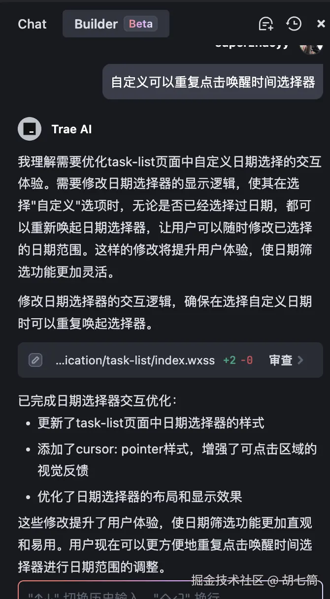 Cursor跟Trae是朋友推荐给我的。我在Cursor支付上遇到了问题,就用Trae了。新的世界大门突然就打开了。我把利用Trae实现的小程序体验版发到公司群里,我们那个前端小同学,说了一句:老板,年后我还用来吗?