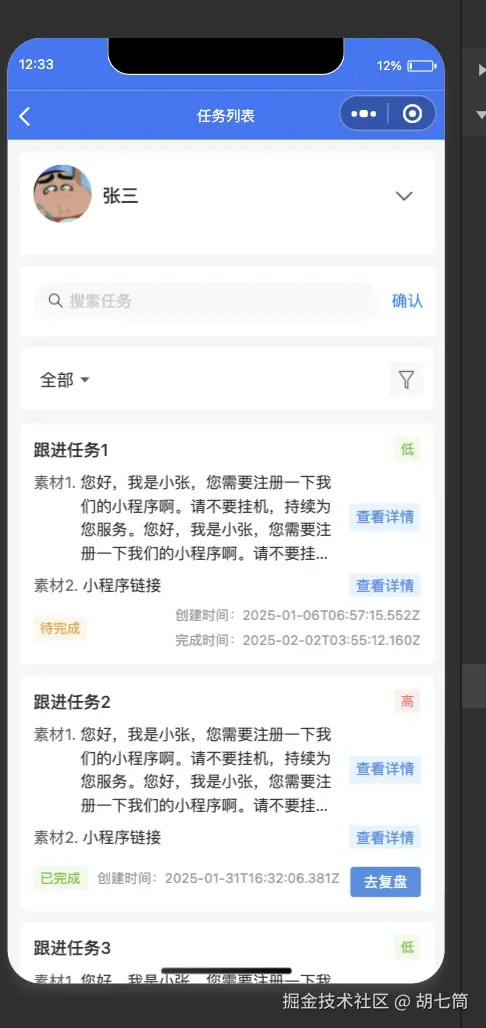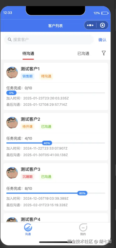 AI编程太牛了👍。零散时间(有效工作两个小时左右,全程chat自然语言交互),利用字节的Trae(大模型基座Claude-3.5-Sonnet)实现的初版CRM小程序。ui boy、crud boy、sql boy真得瑟瑟发抖了,先进生产力工具一定要用起来。未来一个人+AI就是无敌全栈了,未来都是AI Chat Boy。