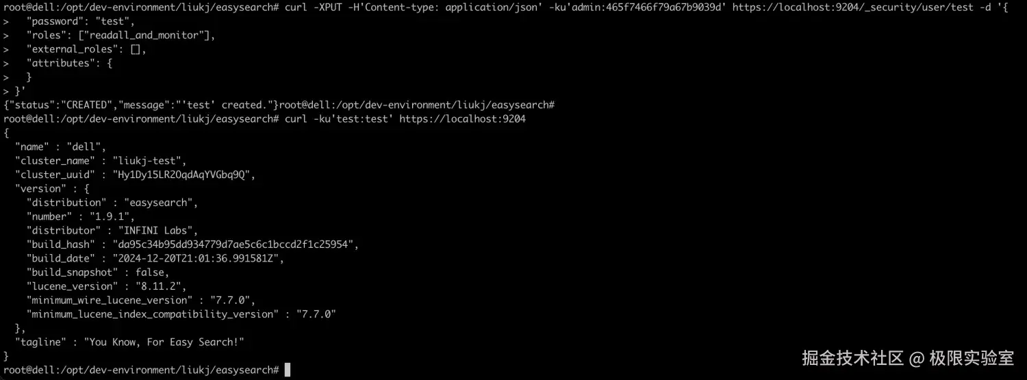 通过查看 Easysearch 用户接口文档,创建用户使用如下接口: