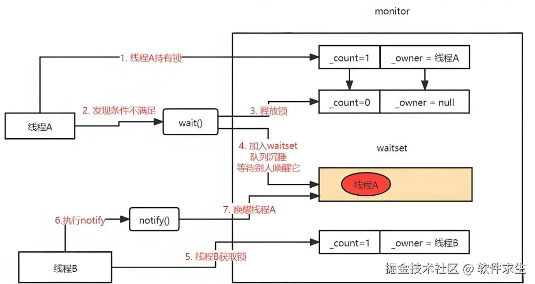 - 线程等待与通知: 监视器还提供了线程之间的协调功能。Java中的wait()和notify()方法正是通过这种机制实现的。线程在监视器上等待时,可以调用wait(),一旦有线程调用notify()或notifyAll(),等待中的线程会被唤醒,重新竞争锁。