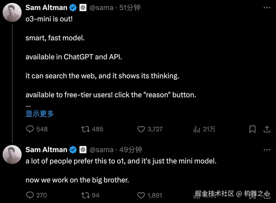 然而,在 o3-mini 上线后,剧情似乎一夜反转了,比如这个帖子宣称 OpenAI o3-mini 碾压了 DeepSeek R1。目前已引发近 400 万网友围观。