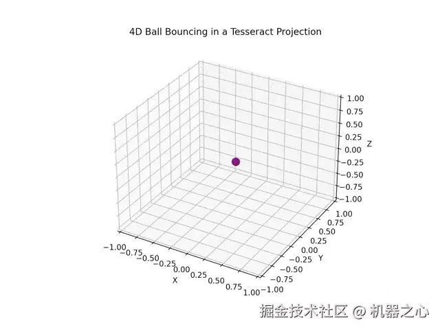 再来看 DeepSeek R1 这边,它对四维超立方体的形状理解似乎还不够深入透彻。同时,小球在其中的运动轨迹也显得有些诡异,有一种「飘忽不定」的感觉。