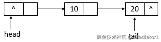 // 赋值头节点与尾结点