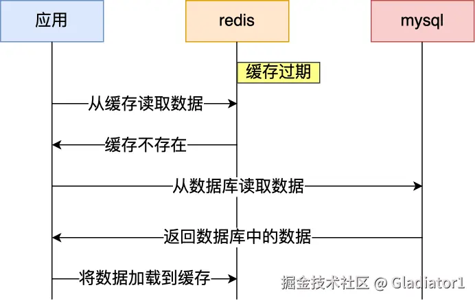 通常我们为了保证缓存中的数据与数据库中的数据一致性,会给 Redis 里的数据设置过期时间,当缓存数据过期后,用户访问的数据如果不在缓存里,业务系统需要重新生成缓存,因此就会访问数据库,并将数据更新到 Redis 里,这样后续请求都可以直接命中缓存。