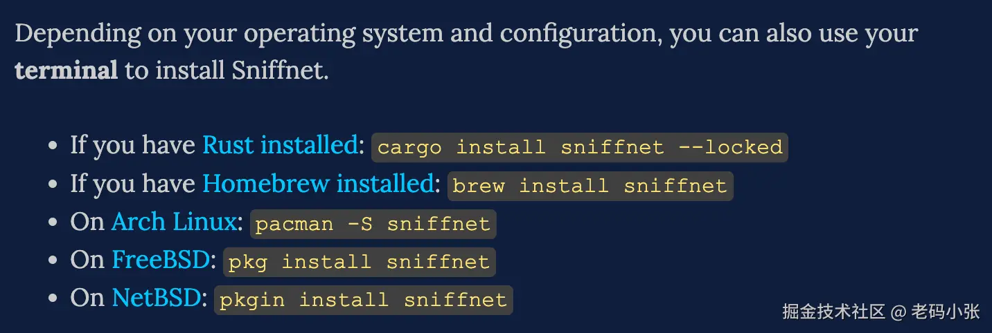 Sniffnet 的安装非常简单。你只需要从 GitHub 上下载对应操作系统的版本,然后按照提示进行安装即可。支持的系统包括: