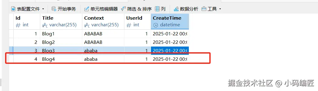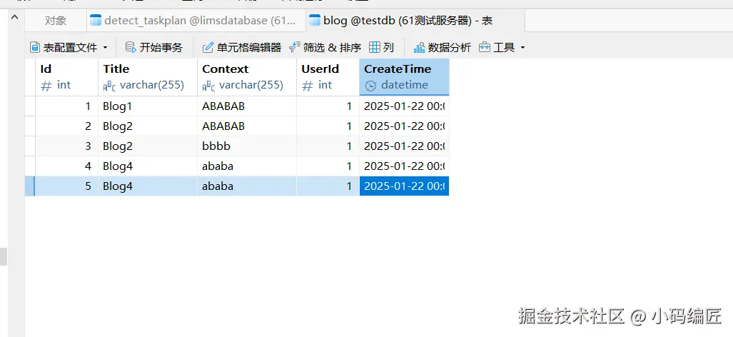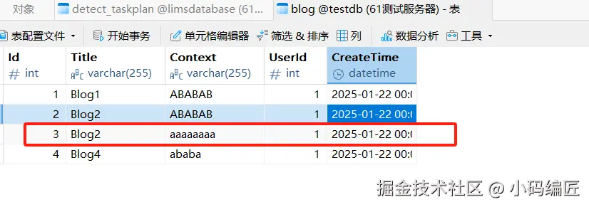 插件的新增博客接口,然后看数据库变化