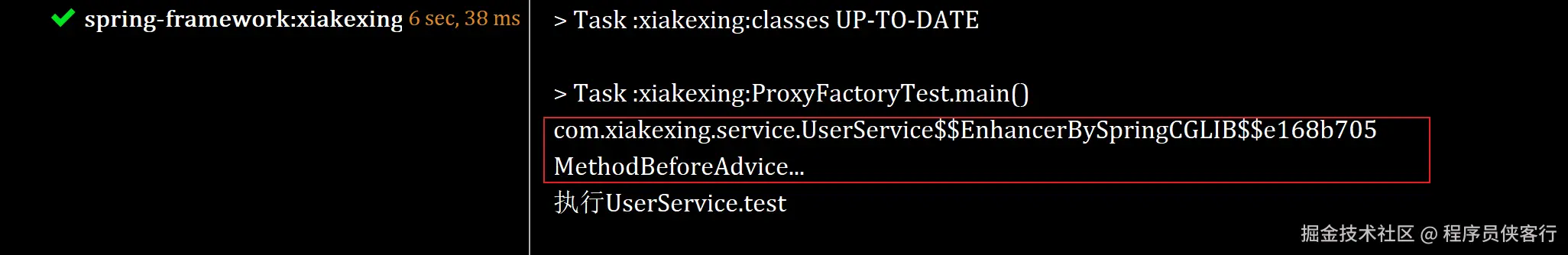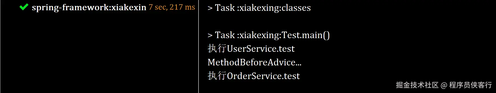 userService.test()并未被增加,而orderService.test()被代理了。 此时,创建Pointcut是不是更灵活了?