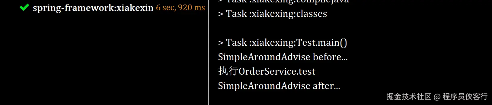来看示例:定义被代理类OrderService、代理逻辑SimpleAroundAdvise。