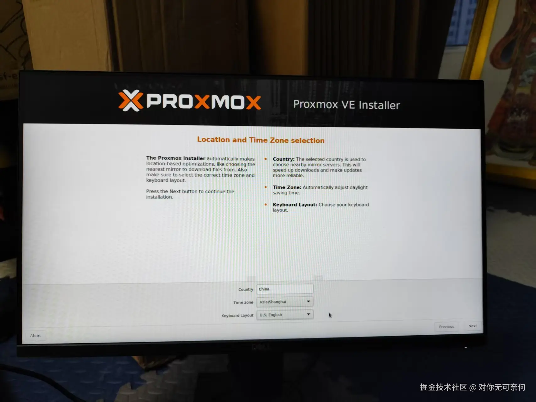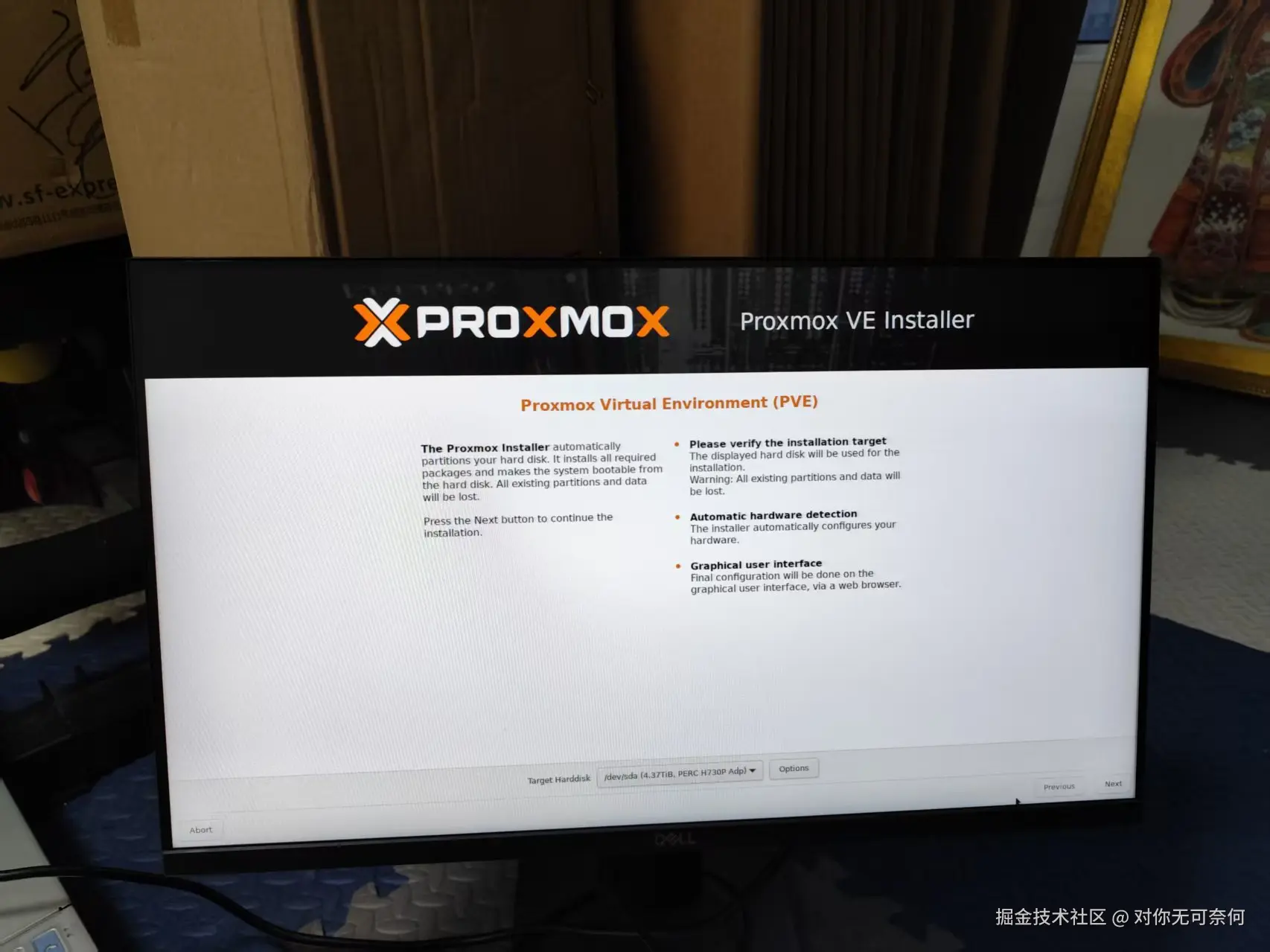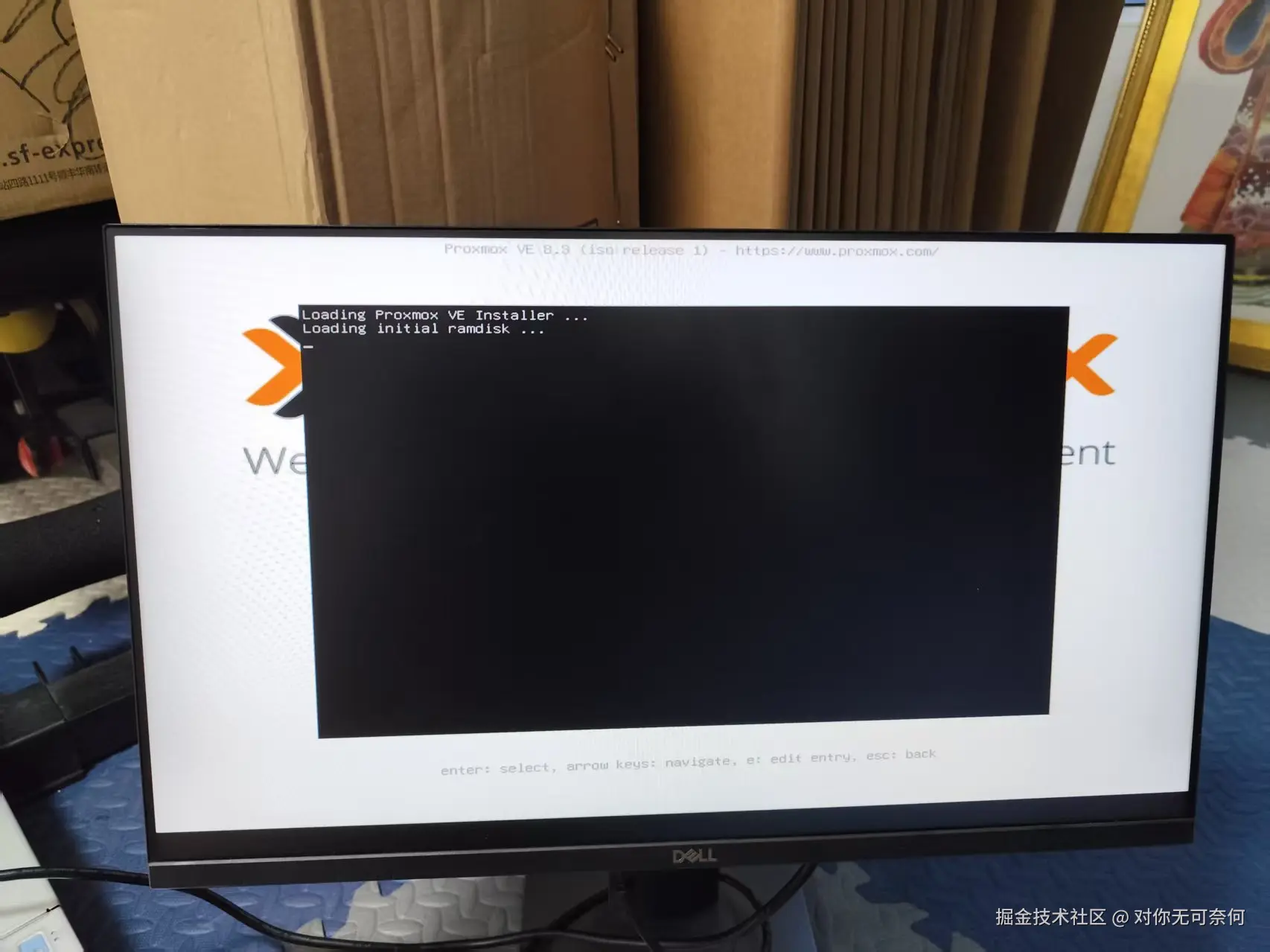 这里选择 默认第一个选项:Install Proxmox VE(Grapgical) 然后回车就可以开始安装系统了: