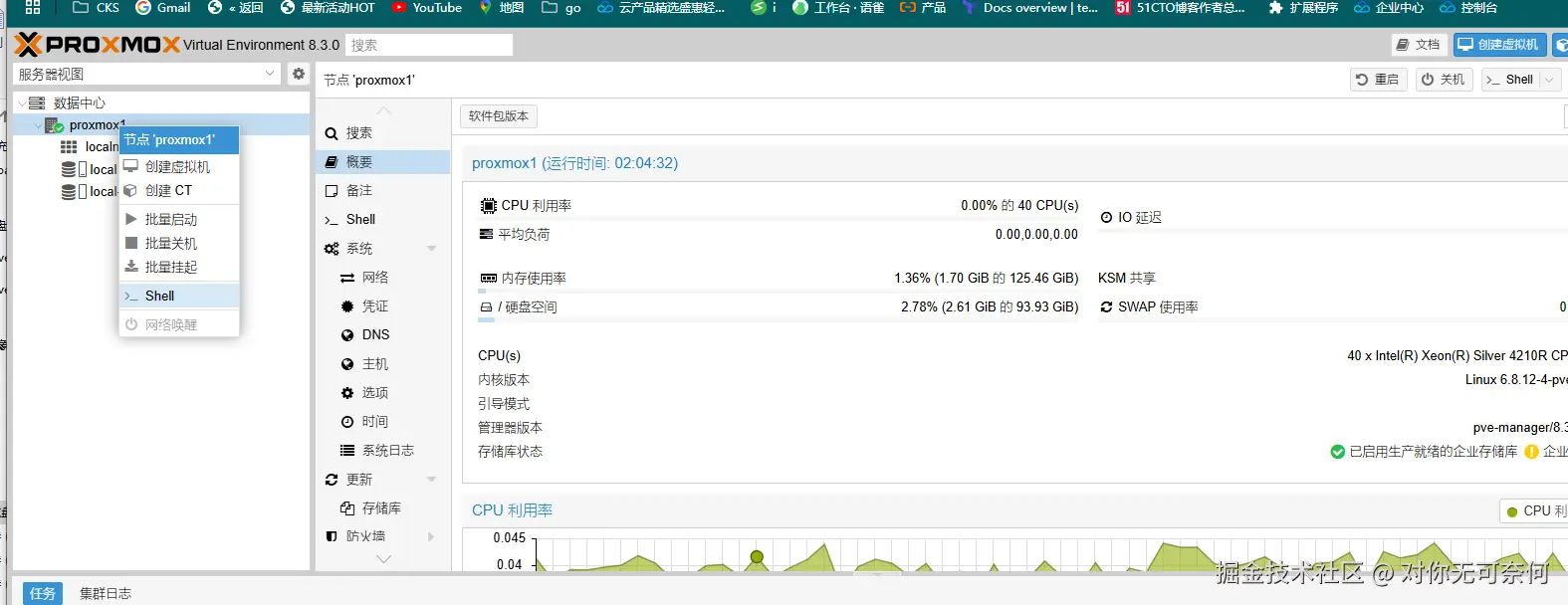 - 网页上右键pve节点,选择 shell 进入命令行控制台