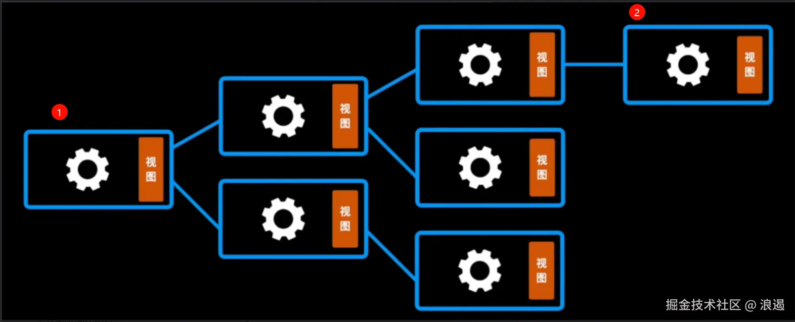 类似地,在React组件中,状态(state)的变化会触发视图(view)的更新。