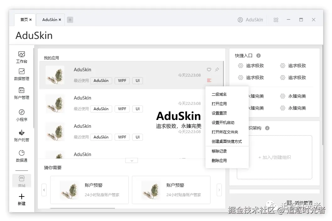 AduSkin一款简单漂亮的WPF UI,融合多个开源框架组件,为个人定制的UI,可供学者参考和使用。