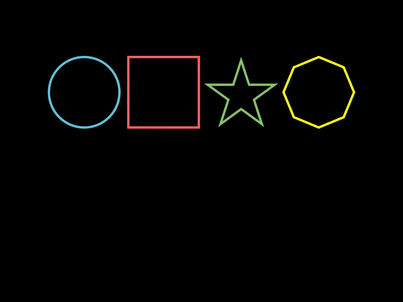 这个示例中,我们创建了一个包含圆形,正方形,星形和正八边形的 VGroup 作为起始形状,