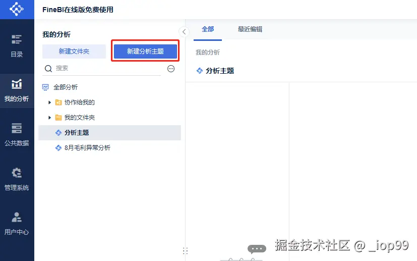 - 新建分析主题