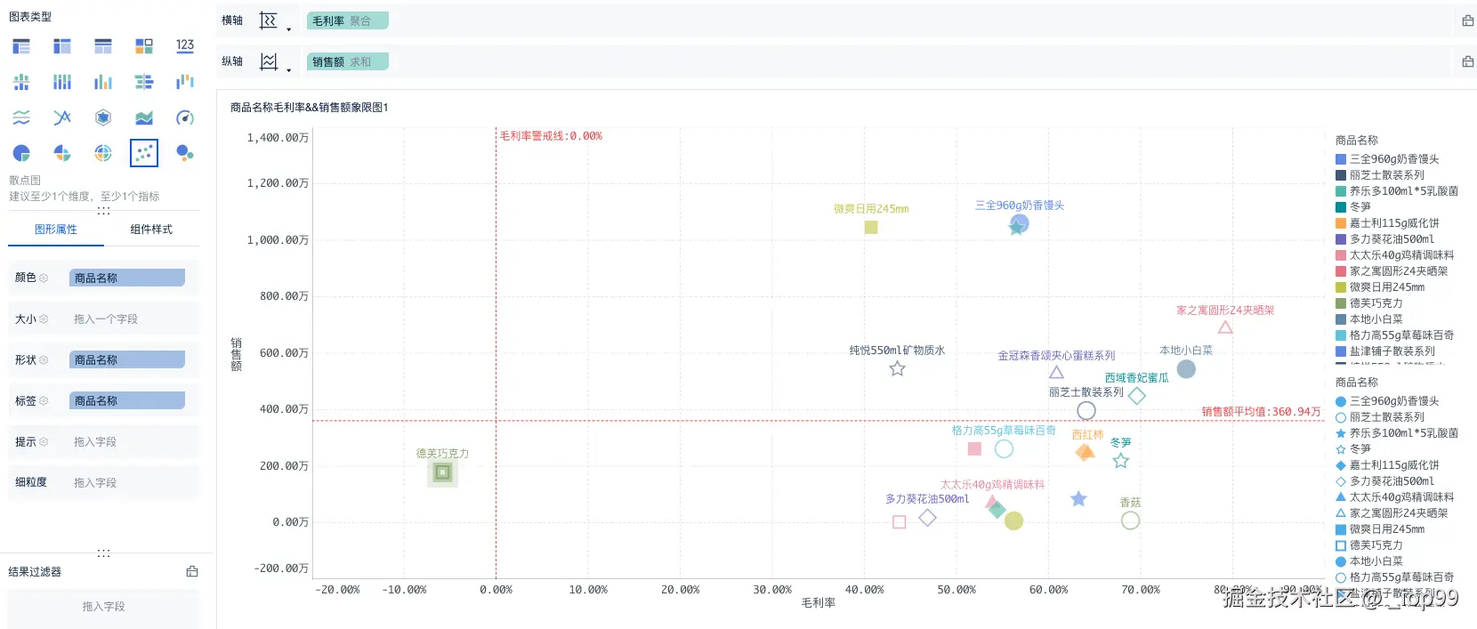 - 各商品销售额&毛利率象限分析图