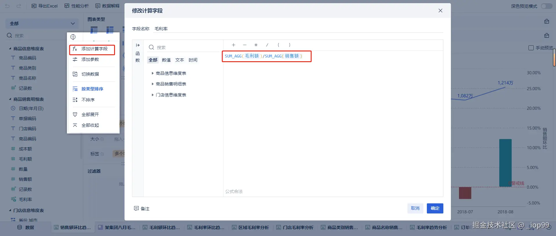 柱状图:毛利率环比(快速计算)