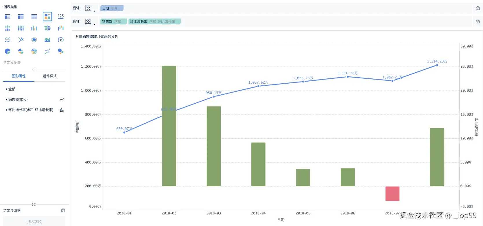 - 图表名称改为“月度销售额&&环比”