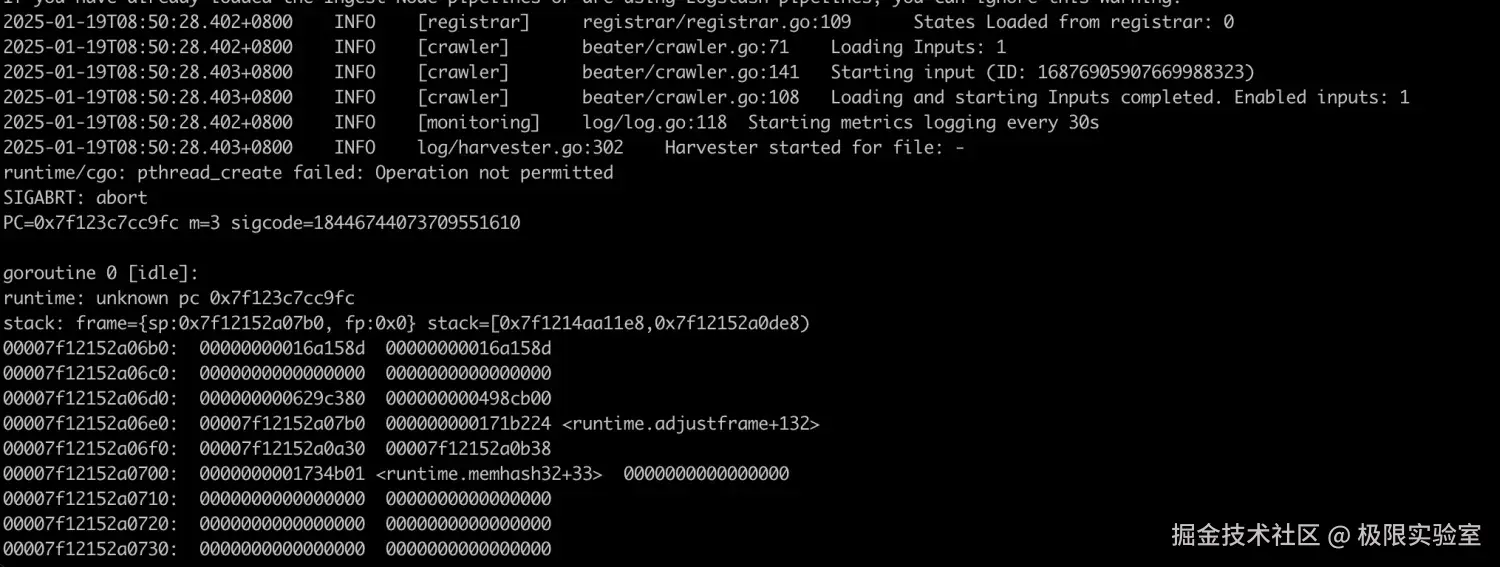 在官网找到相关问题,因为 glibc >= 2.35,但 beats 里允许的默认系统调用中没有 rseq 导致的异常。问题已在 7.17.2 版本修复。