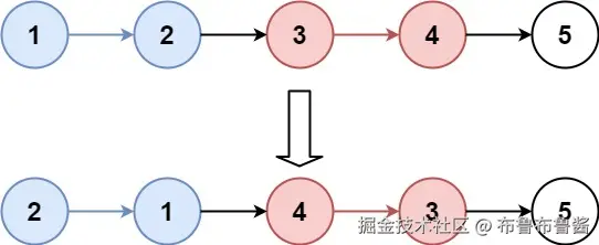 start.next = cur; // 原反转部分的尾节点指向cur,即下一组的头节点