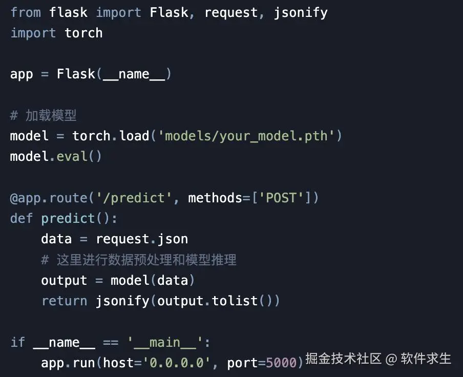 接下来,我们创建一个简单的Flask应用来加载Deepseek模型并提供API接口。在项目根目录下创建一个app.py文件,内容如下: