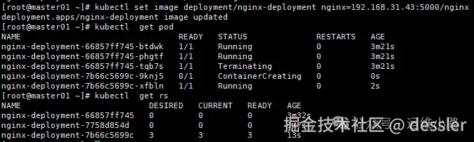 2.创建了一个新的rs,以新的镜像开始创建pod。