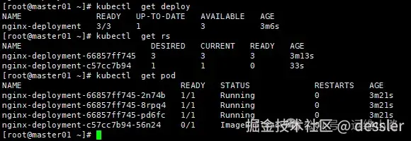 deployment名字-rs名字-随机字符,通过这个名字我们也可以看出来这个rs的名字,然后可以根据pod名字反过来查看rs的名字,正常的pod只有有一个rs名字,如果出现一个deployment产生的pod名字出现2个rs名字就说明这个更新出现问题。