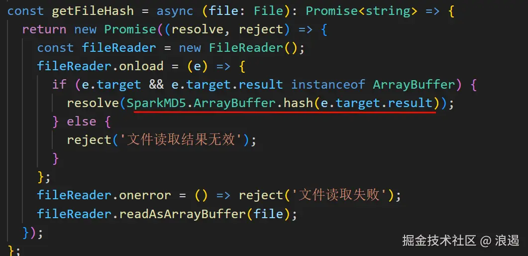 计算MD5 哈希值我们封装的函数如下 : 使用 Spark-md5 库