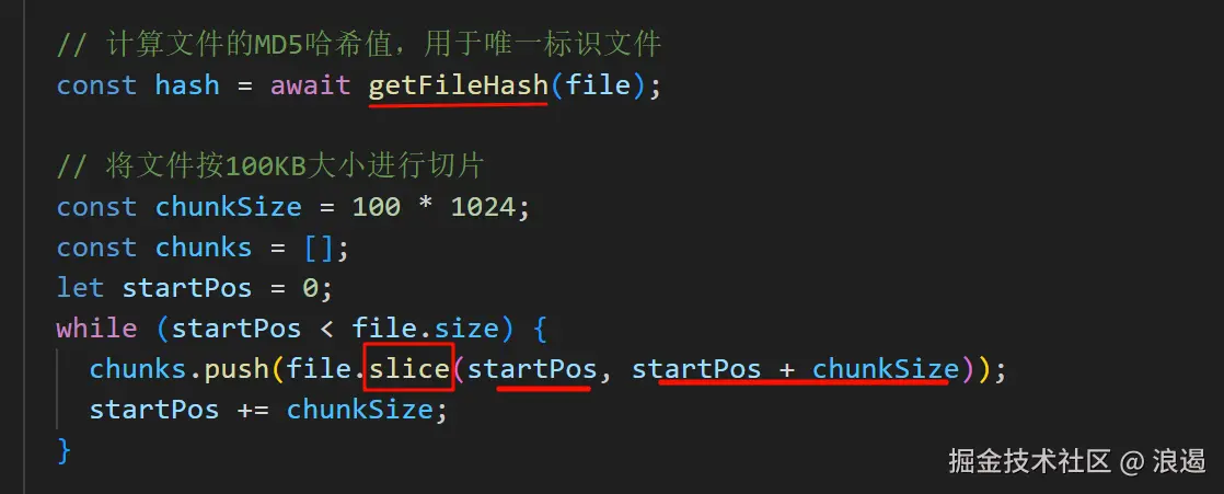 - 前端选择文件后,计算文件哈希值并分割文件(文件分片)