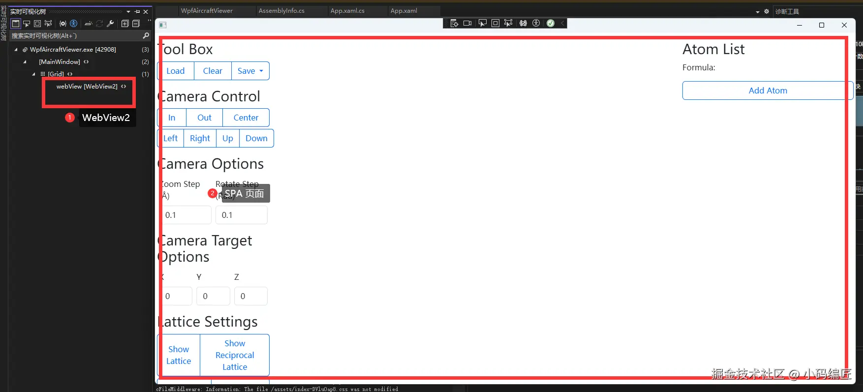 这时我们就可以先将 SPA 文件从 npm 项目的 dist 复制到 wwwroot 了,在编辑 MainWindow 加入 WebView2 控件后就可以查看了。