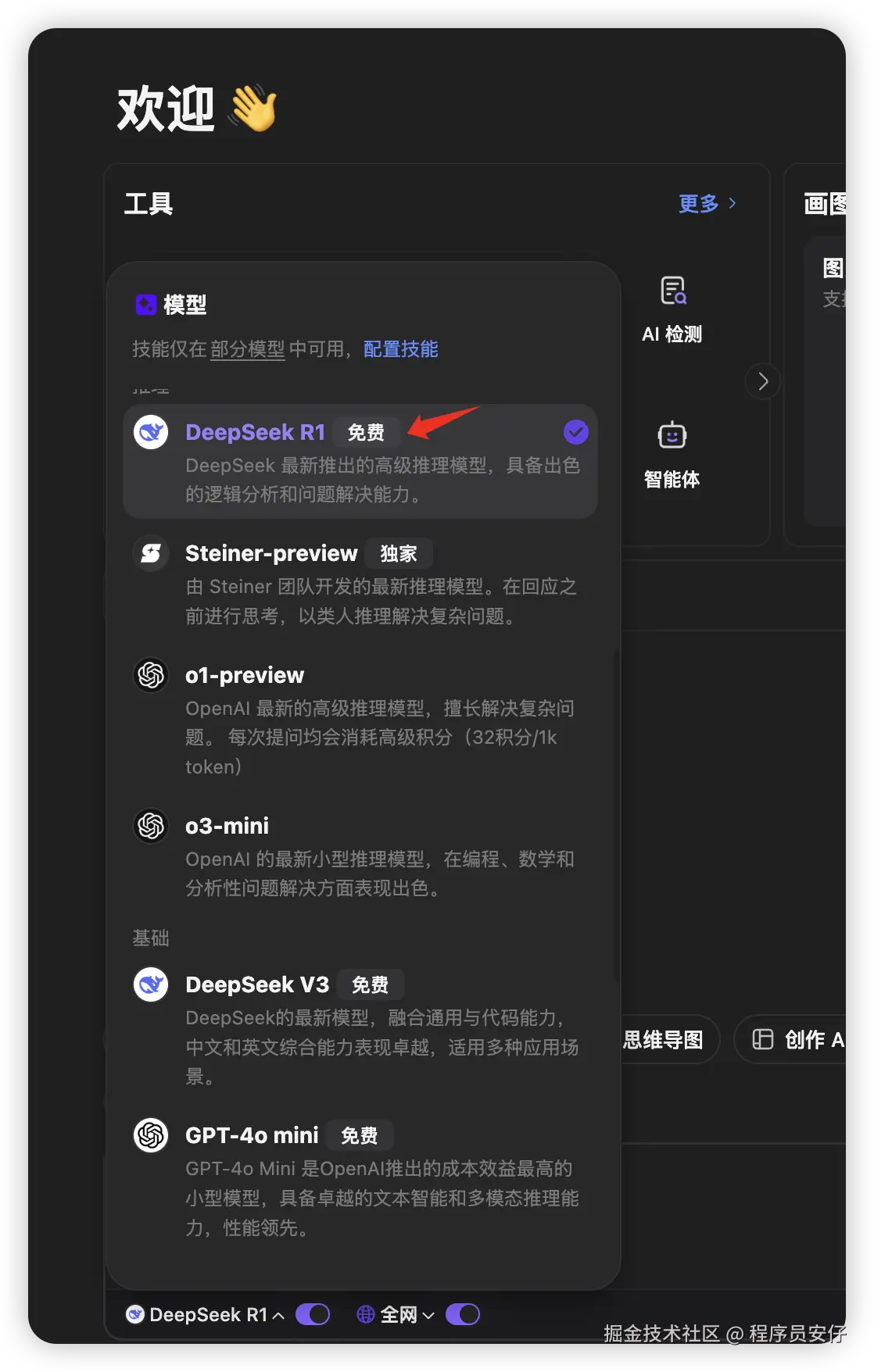 - 内置多种顶级 AI 模型:包括 GPT-4、Claude 3 以及 DeepSeek R1 等
