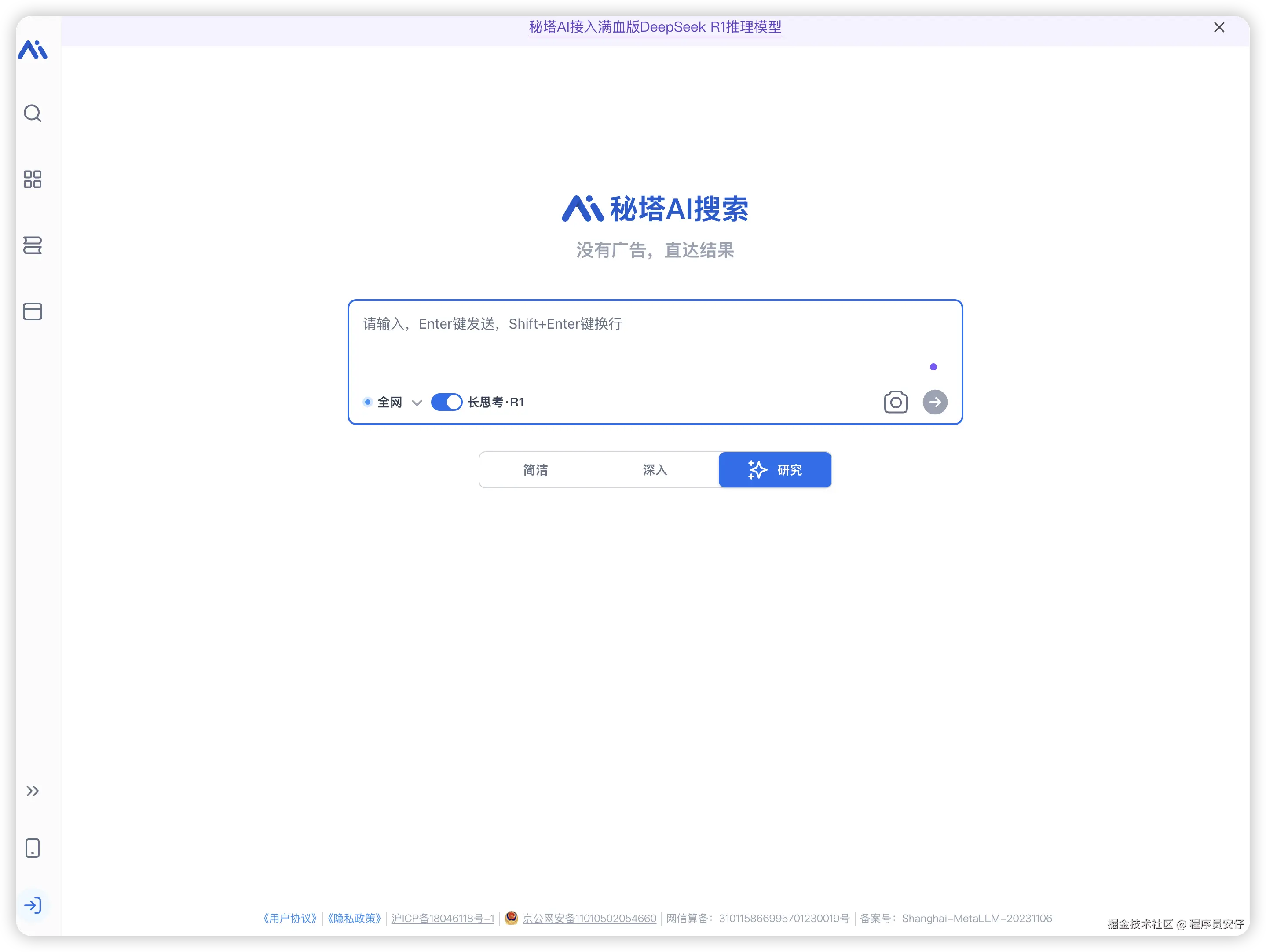 纳米 AI 搜索是一个国内的 AI 搜索引擎,它也支持 DeepSeek R1 模型。