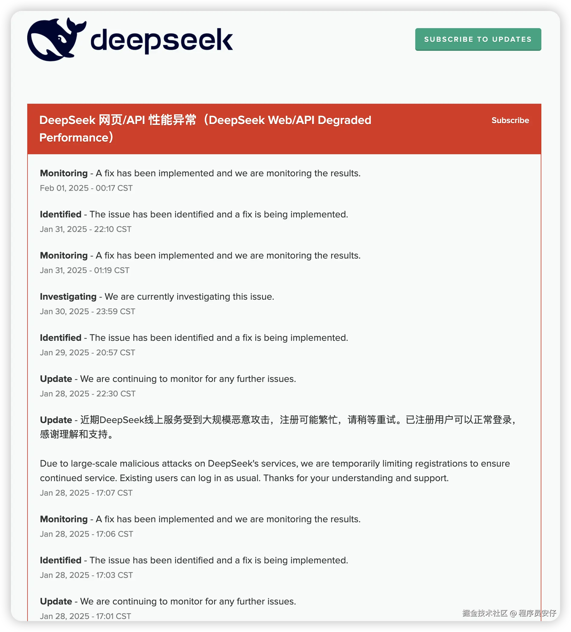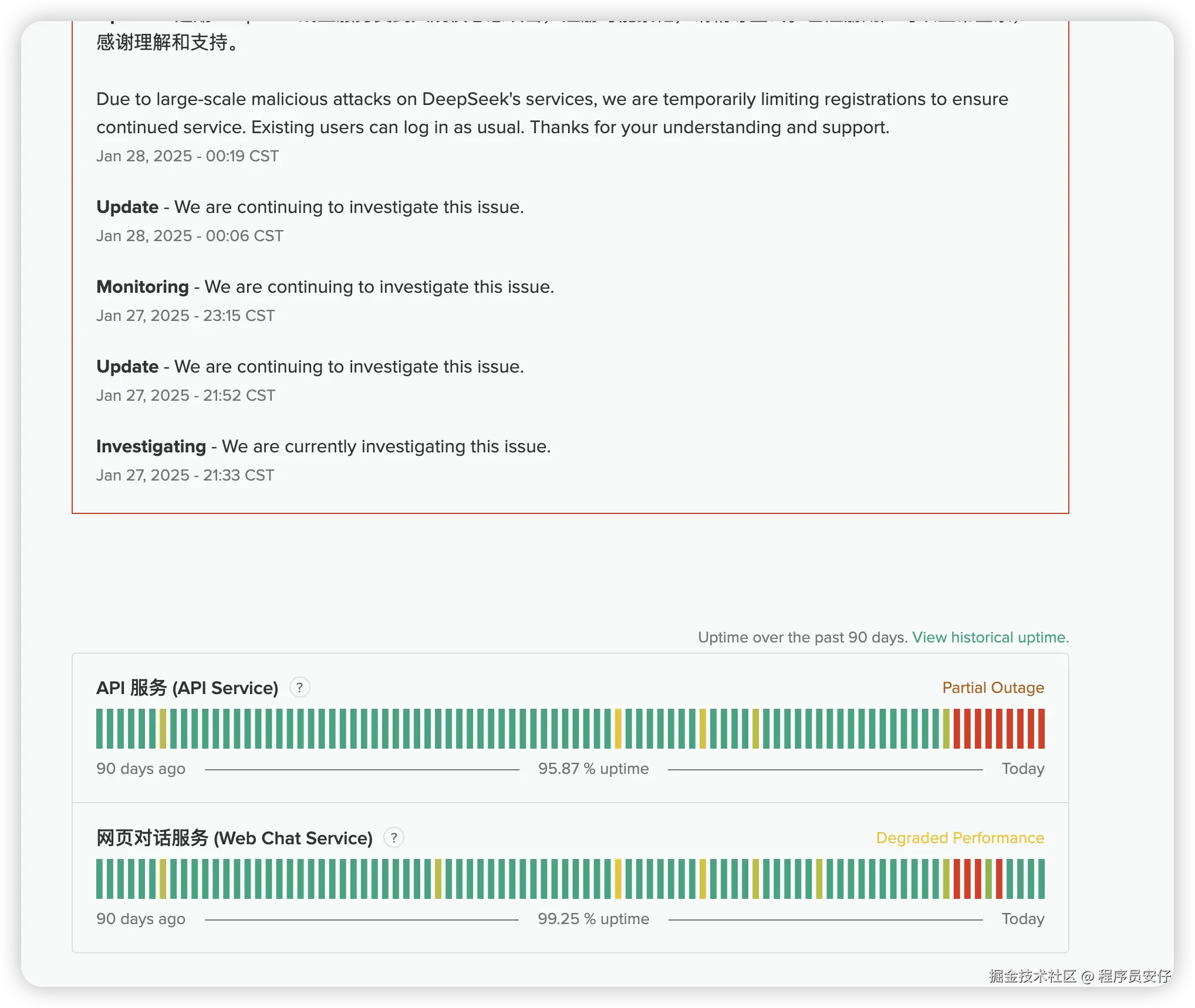 新年这段时间,DeepSeek 实在太火了,火到了全球,用户请求数爆了,但也被国外 DDos 攻击爆了,到现在的 Deepseek 网页服务和 API 服务时不时都还在抽风,你看看目前的 Deepseek 服务状态: